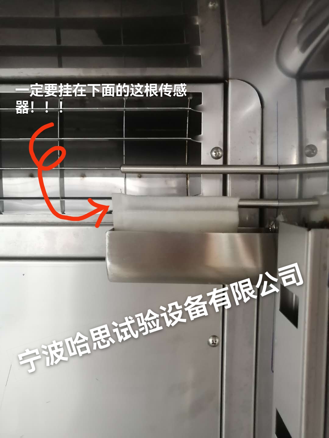 1.挂置位置:将湿球纱布挂置在恒温恒湿试验箱的湿球传感器上。注意区分温度传感器和湿度传感器,湿球纱布应挂在湿度传感器上(通常为下面的那根传感器)。